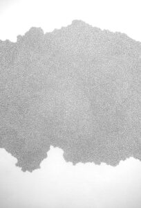 Calvin Pang is a visual artist whose practice is grounded in materiality, environment, and sustained observation of the physical world. His work explores the balance between control and surrender, tracing moments where meaning emerges through repetition, chance, and sensorial engagement. Pang’s earlier monochromatic series, Unplanned Endings, comprises black-and-white drawings on paper created through repetitive mark-making. The resulting circular, cell-like forms oscillate between order and entropy, evoking microscopic life and inviting contemplative viewing. The large-scale work Without Words, inspired by the unplanned drying of ink, serves as a conceptual anchor for this series and reflects the artist’s openness to material processes beyond his control.